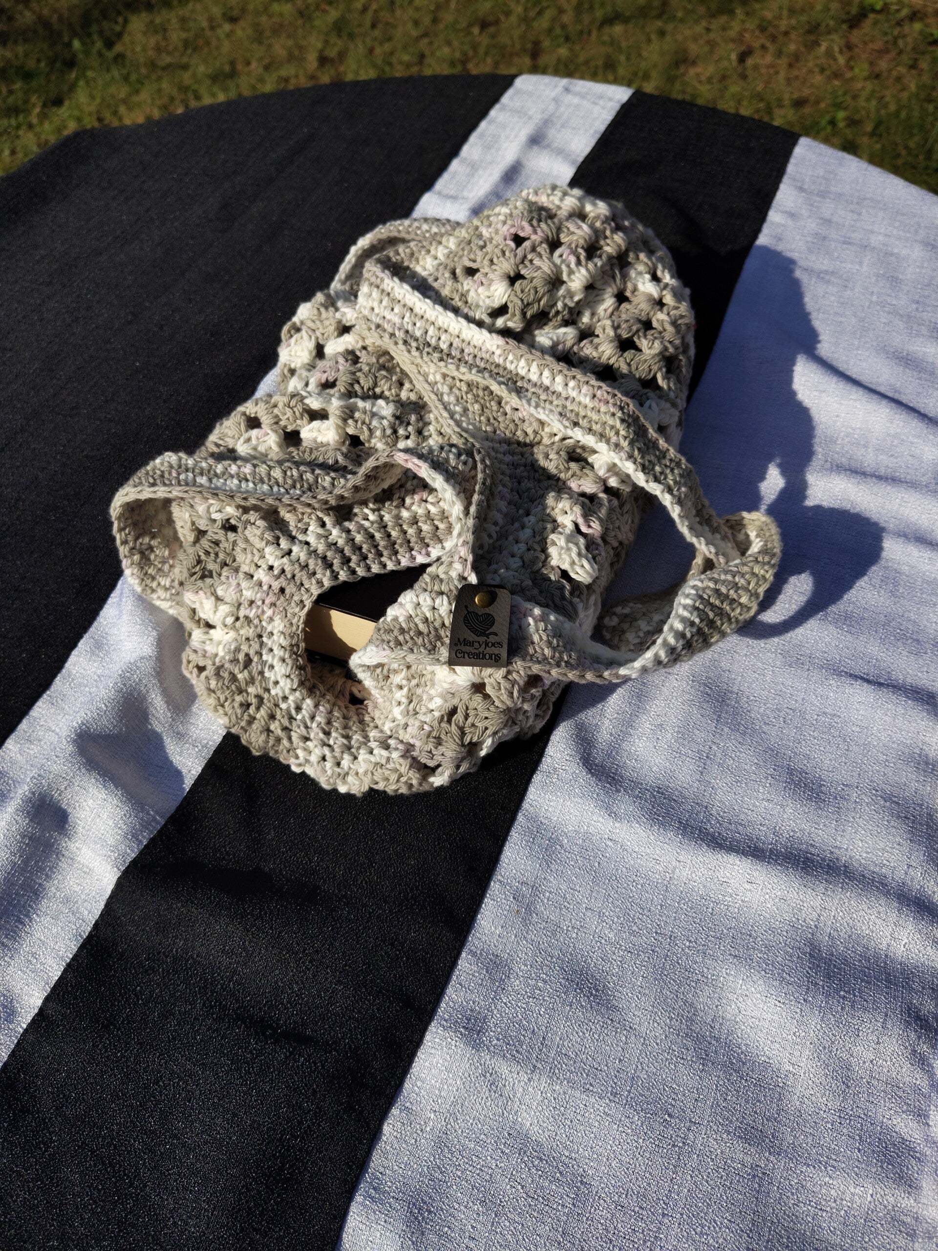 Small Granny Square Market Bag - It's a Granny Square with the straps crocheted onto the square to make it one piece... It's very durable and has some stretch... Made with 100% cotton